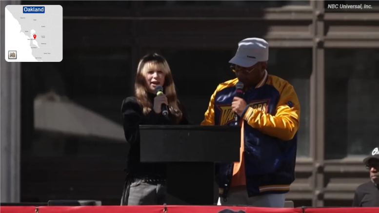 祝賀会で登壇またはパフォーマンスを行ったのは、DJ D Sharp、フレモント高校のドラムライン、アバヨミ・ルイス、レティーファ・サイモン下院議員、バーバラ・リー市長、オークランド・チャイナタウンのドラゴンダンサー、スカイライン高校のリナ・グエン、TURFincダンサー、ブライアン・ボイタノ、スティーブ・カー、ステフィン・カリーからのビデオメッセージ、クリスティ・ヤマグチ、アンドリュー・ウォード、オークランド・ルーツ&オークランド・ボーラーズ、ケラーニであった。