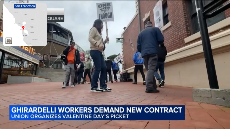 出典: abc7news.com: SF Ghirardelli workers hold Valentine's Day strike outside iconic chocolate and ice cream shop