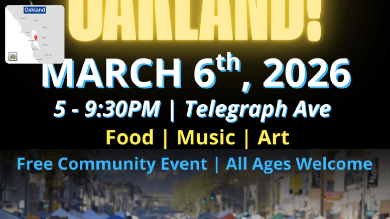 オークランドで毎月第一金曜日に開催される無料のストリートフェスティバル「オークランド・ファースト・フライデーズ」が再開されることになった。このイベントはオークランドの多様な芸術、文化、コミュニティを祝うもので、テレグラフアベニュー沿いのウェストグランドから27th ストリートまでの区間で行われる。初めは草の根のアートウォークとして始まり、今では地元のアーティストやミュージシャン、フードベンダー、パフォーマー、小規模ビジネス、そしてコミュニティ組織を支える文化的なムーブメントへと発展した。