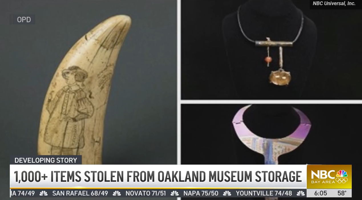オークランド博物館オブカリフォルニアの収蔵品から1000点以上が今月初めに盗まれた。この事件は10月15日午前3時30分前に発生し、容疑者は博物館の保管施設に侵入して先住民のバスケットやジュエリー、ラップトップ、その他の歴史的遺物を持ち去った。博物館の責任者ロリ・フォガティ氏は、これは州の文化遺産を奪う行為であると述べ、市と警察、FBIと協力して盗品の返還を目指していると発表した。事件は計画的な犯行ではないと考えられ、被害品の価値を知らずに売却を試みている可能性があるとされている。警察やFBIは情報提供を求めている。
