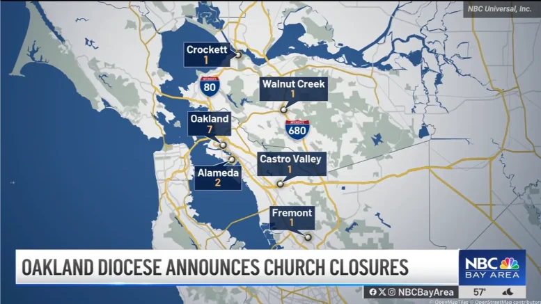 出典: nbcbayarea.com: 13 Catholic churches across the East Bay to close, Oakland Diocese says