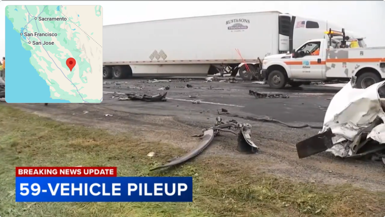 出典: abc7news.com: Highway 99 in Central California reopens after 59-vehicle pileup, CHP says