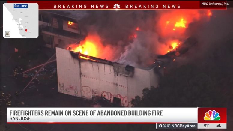 出典: nbcbayarea.com: Fire at vacant building in West San Jose – NBC Bay Area