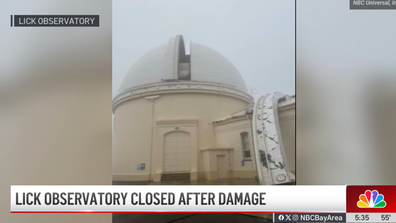 出典: nbcbayarea.com: Historic Lick Observatory damaged by 114 mph winds