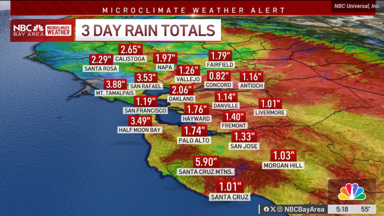 出典: nbcbayarea.com: Bay Area storm: Another system brings more rain and possible thunderstorms
