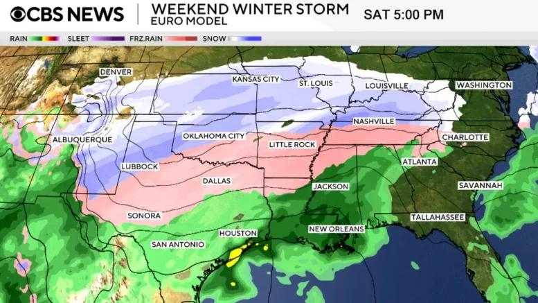 出典: cbsnews.com: Maps show where winter storm threatens to bring heavy snow, ice, brutal cold this weekend