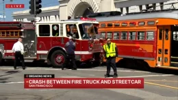 サンフランシスコのエンバカデロ沿いで月曜日、歴史的なミュニ路面電車が衝突事故に巻き込まれた。市民の映像には、路面電車が消防車に衝突した様子が映っていたと報じられた。