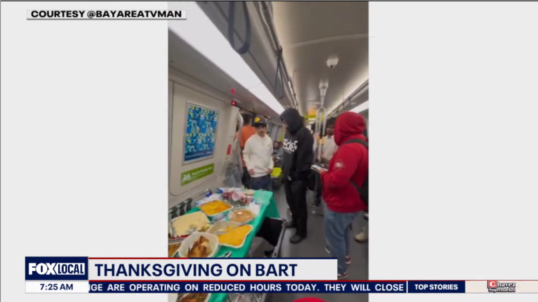 BART列車内で感謝祭のディナーが振る舞われる