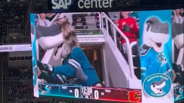 サンノゼ・シャークスのマスコットであるS.J. シャーキーが、オリンピック金メダリストでオークランド出身のアリッサ・リュウの象徴的な姿を完璧に再現した。これは、木曜日の夜にSAPセンターで行われたシャ…