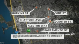 イーストベイの警察は、少なくとも3都市で事業所への侵入を繰り返しているとみられる強盗団を捜索している。バークレー警察によると、月曜日の朝、バークレー市内の7つの事業所から現金とレジが盗まれた。